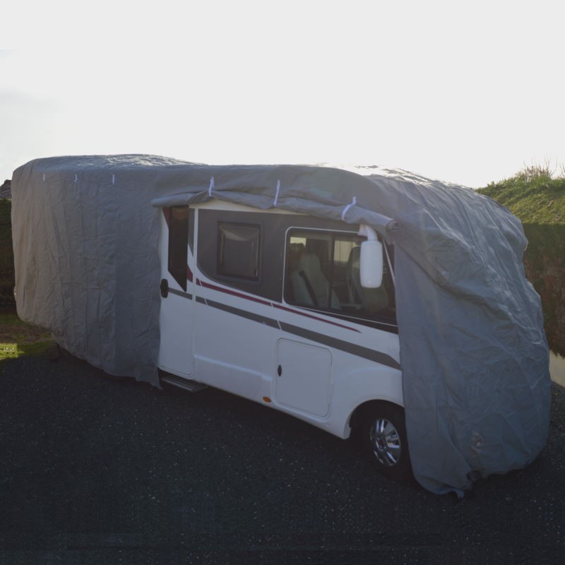 Cette bâche est semi sur mesure, c’est à dire qu’elle est taillée pour une catégorie de camping-car ayant des dimensions similaires (environ 20 cm de marge).L’ajustement s'opère ensuite grâce un cordon de serrage situé au bas de la bâche à l’avant et l’arrière. Les sangles de maintien et les boucles renforcées présentent sous le châssis assure une fixation de qualité. Un système d'ajustement qui permet à la bâche d'éviter de s'envoler ou de vibrer avec le vent.